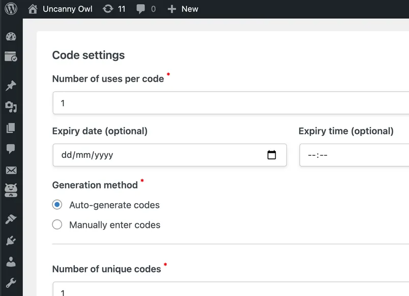 Uncanny Redemption Codes is the most complete, easy-to-use code management plugin for WordPress. Here are the features that make Uncanny Redemption Codes such a useful tool for marketing, ecommerce, elearning and membership websites: