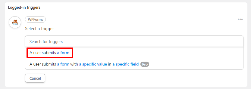 The next step is to configure the trigger for our recipe. To get started, you should select WPForms from the list of available integrations.