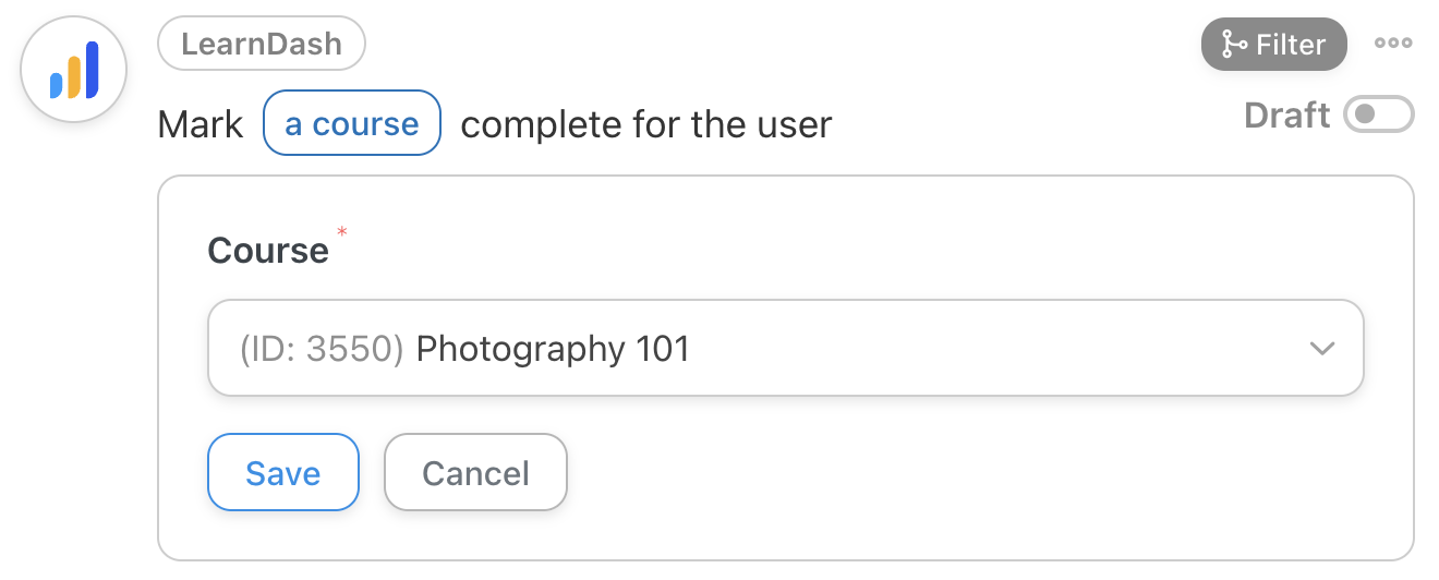Automator allows you to add as many actions and filters to recipes as you want. You can choose to use a single recipe to import all course completions to LearnDash or unique recipes for each course. It’s up to you. Just know that the more actions and/or users you include in a single recipe, the longer it will take to execute the recipe. Additionally, the recipe logs may not be as easy to review.