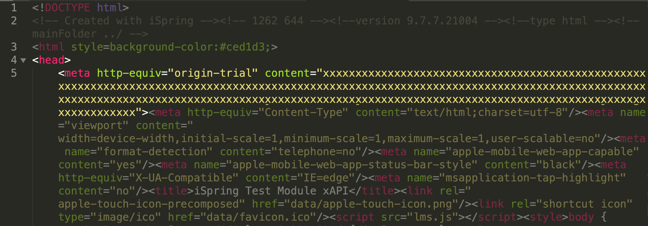 - For each iSpring folder (you can match IDs to uploaded modules on the Tin Canny Reporting > Manage Content page in /wp-admin/), go into the /res/ folder and open the index.html file in a text editor.