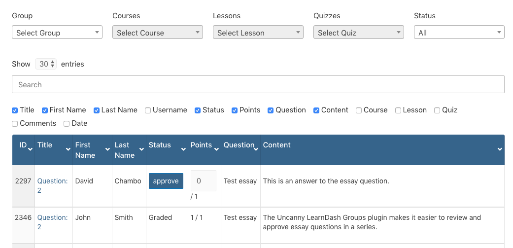 columns="Title, Student, Status, Points, Question, Content, Course, Lesson, Quiz, Comments, Date"