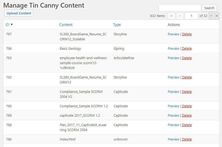 - Preview uploaded content (note that xAPI statements will be tracked when you preview content)