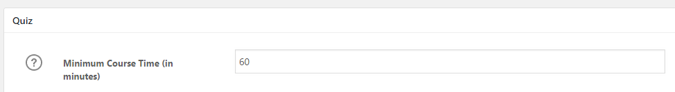 If the Enable Quizzes after X time option is checked in the Simple Course Timer settings, a field is added to quiz pages that, when populated, will block users from attempting a quiz if they have not yet logged enough time in the course: