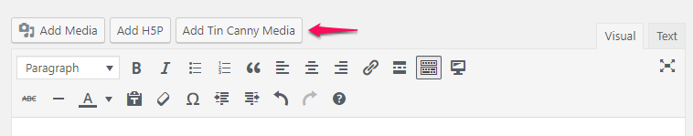 If you are using a pagebuilder such as Elementor or WP Bakery Page Builder, look for a “text” module and add that to the page. The editor in the text module should display the Add Tin Canny Media button (see above), which you can use to insert your content.