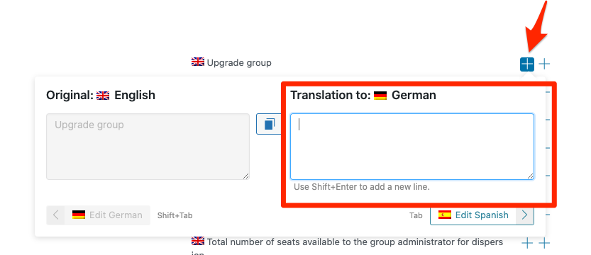 Steps 4 – Add a new string translation by clicking the plus “+” icon. S tep 5 – Add the language specific text into the translation field.