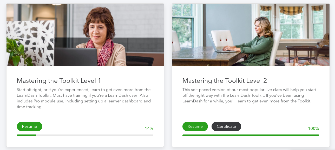 Those 14 modules are currently available in the free version of the Toolkit and offer an easy way for admins to add extra capabilities to LearnDash sites.