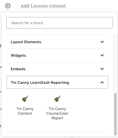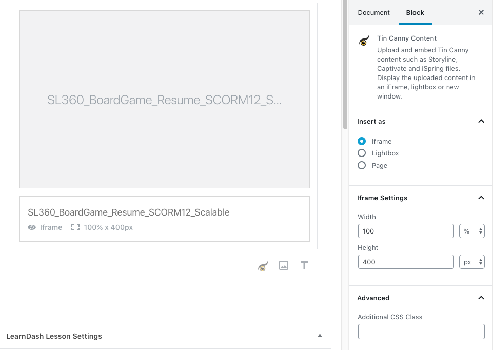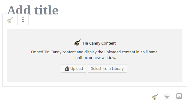 Uploading modules is now done in Gutenberg using the “Tin Canny Content” block. By clicking that, you can choose to Upload a new module or Select from Library any existing content.