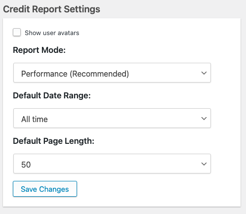 - Ludicrous: Generates cached credit data hourly based on a cron, then loads the data from the cached record in the report. Can be refreshed on demand if data is stale.