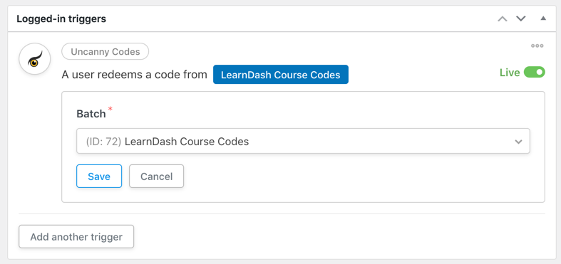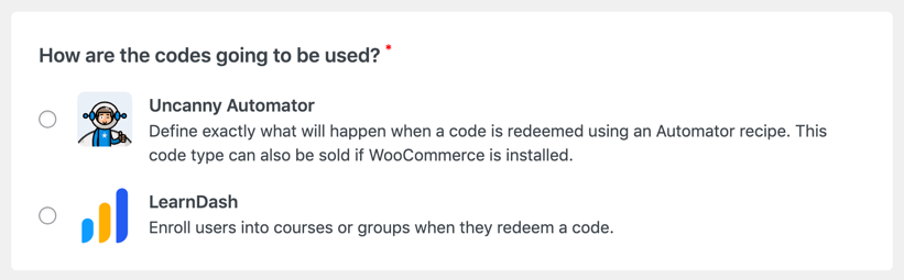 Uncanny Codes 4.0 will answer those questions, because the plugin no longer requires LearnDash and we have linked the redemption of codes and code batches to Automator recipes. (For anyone not familiar with Uncanny Automator, it’s a plugin that connects lots and lots of things together. When something happens somewhere, Automator can make something else happen, like the redemption of a code adding a user to a membership level.)