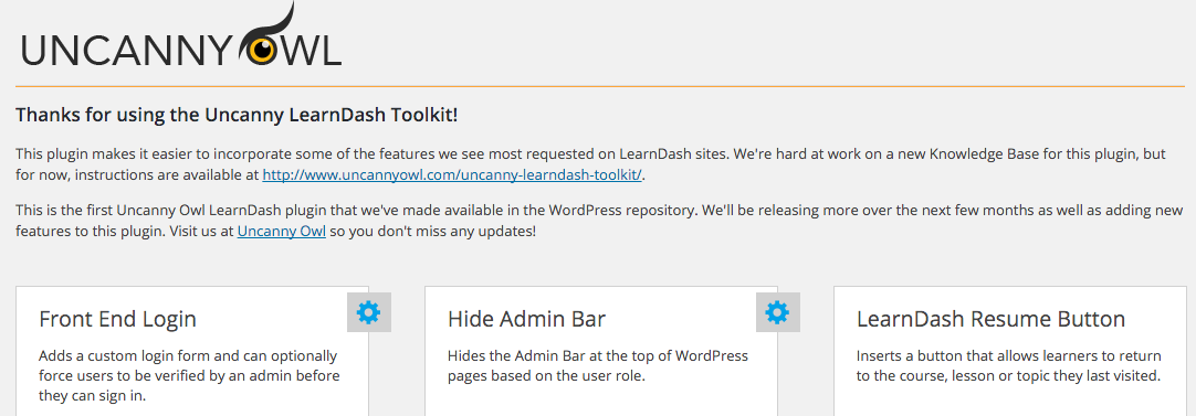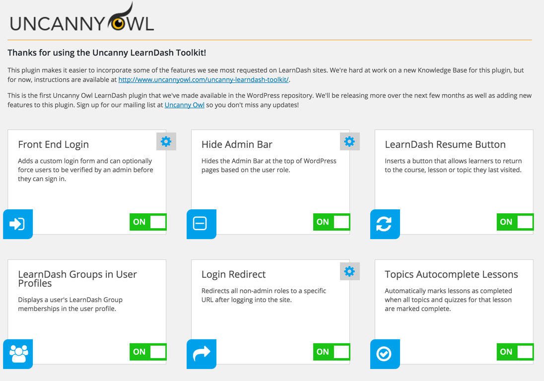 We are very pleased to announce the Uncanny LearnDash Toolkit, our very first plugin in the WordPress repository. This plugin is a collection of some of the key basic features we see requested on LearnDash sites that usually require a custom solution. We created this plugin to make it easier for general LearnDash users to get a head start with their LearnDash sites.