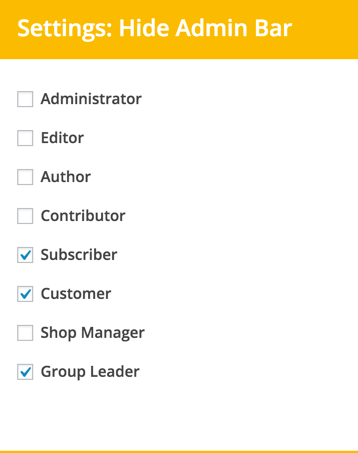 This very simple function turns the black admin bar at the tops of pages off for any roles that you don’t want to have access to it. Typically this might include Subscriber and Customer roles.