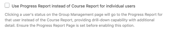 In the previous version of the Uncanny Groups plugin, clicking a user’s status on the Group Management page took Group Leaders to the Course Report. Based on feedback from current users, we are adding the option to instead take Group Leaders to the Progress Report (a.k.a. Manage Progress) instead. This will allow easier review of student progress. The Not Started status will also now be hyperlinked (previously it was not, since there was no progress to report, but if a Group Leader needs to add progress records this will now be easier).